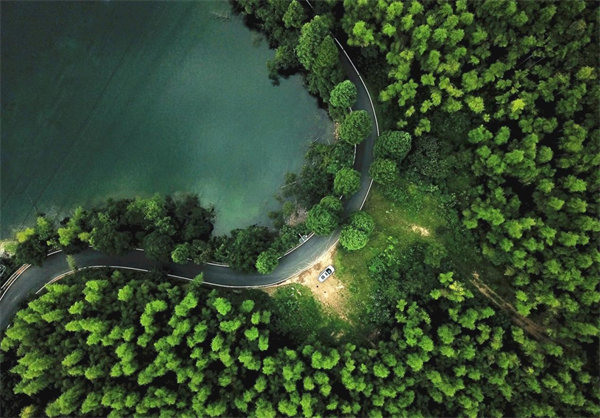 时值初夏,“两山”理念发源地浙江省安吉县余村,远见群山苍翠、竹海连绵,近处水田漠漠、草木阴阴,一派美丽和谐景象。